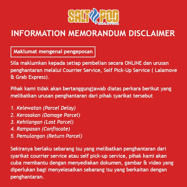 For Age of 18+ Only ! Postage Every MON - FRI , except Weekend & Public Holiday ! Please do allow 1-2 working day to proceed your order 🙏